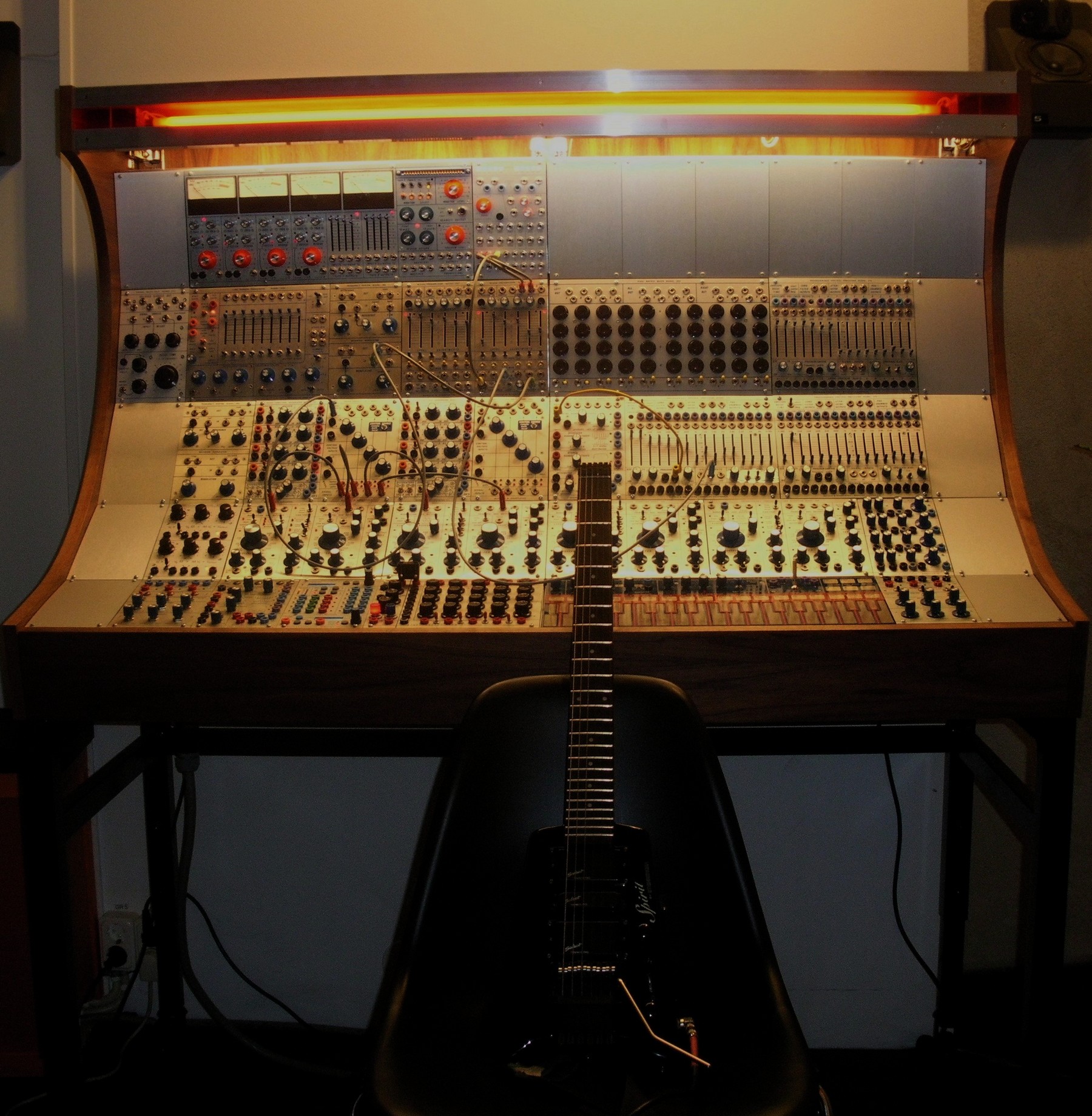 The late Donald Buchla (1937-2016) Invented many instruments from his keyboardless Model 100 (pictured here is a Buchla 200), the Marimba Lumina, but no guitar. So along comes one Alan Courtis and he creates what Buchla did not live to invent.