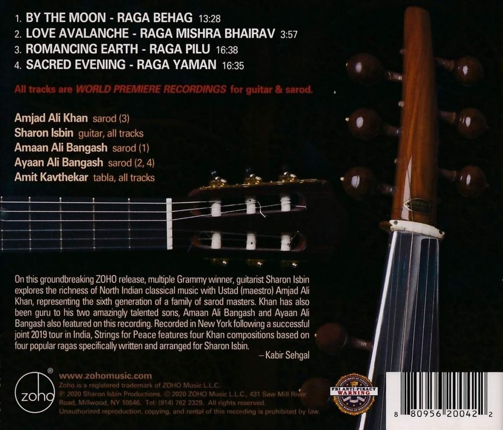 Her collaborators span seven generations of familial musical traditions in India. Here we have master sarod player, Amjad Ali Khan and his very accomplished sons, Amaan Ali Bangash and Ayaan Ali Bangash. They are dazzlingly accompanied by tabla player Amit Kavthekar. All the music was written by Amjad Ali Khan and arranged for Sharon Isbin. And so she joins people like Menuhin and Ry Cooder in establishing a new generation of collaborative music making.