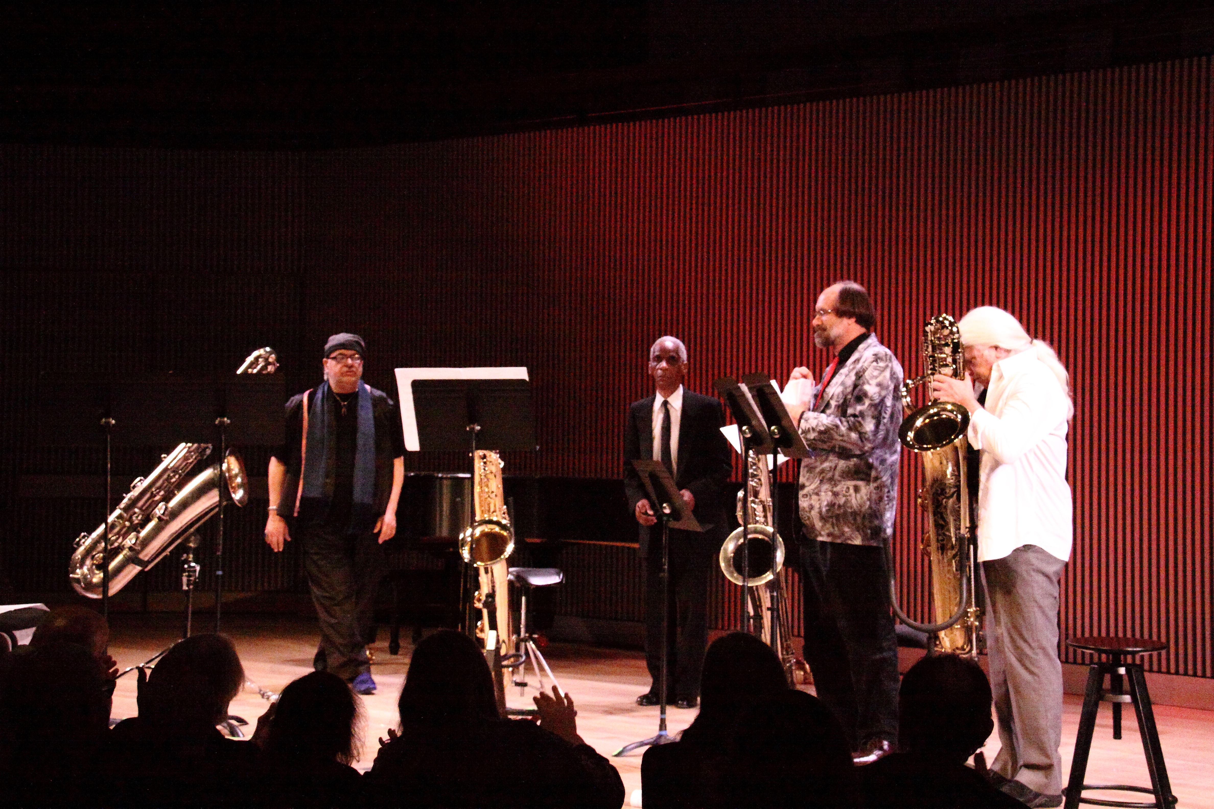 Roscoe Mitchell, Vinny Golia, Scott Robinson and J.D. Parran following their performance of Noonah (2013)